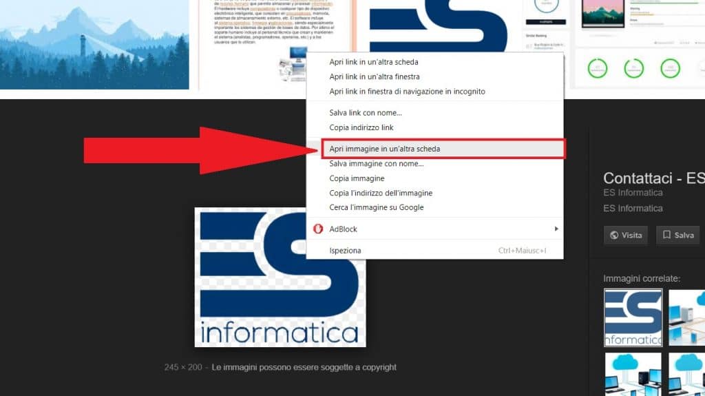 - Scegliere “Apri immagine in un’altra scheda” Si aprirà quindi l’immagine originale sul browser